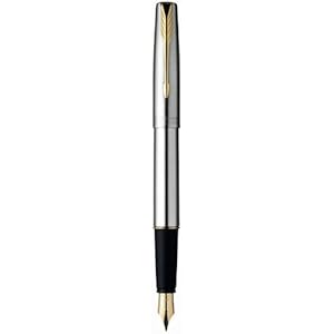 Lire la suite Parker - Frontier: Stylo Plume Acier Attributs Dorés, Plume Plaquée Or de Taille Fine.