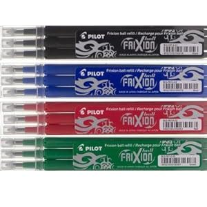 PILOT - Lot de 4 Set de 3 recharges pour Stylo Frixion Ball : couleurs Bleu/Noir/Rouge/Vert von Pilot