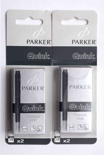 Parker Quink: Lot de 20 Cartouches pour stylo à plume Parker encre noire Lavable Parker Quink (2 Blisters de 2 Etuis de 5) Descriptions du produit
